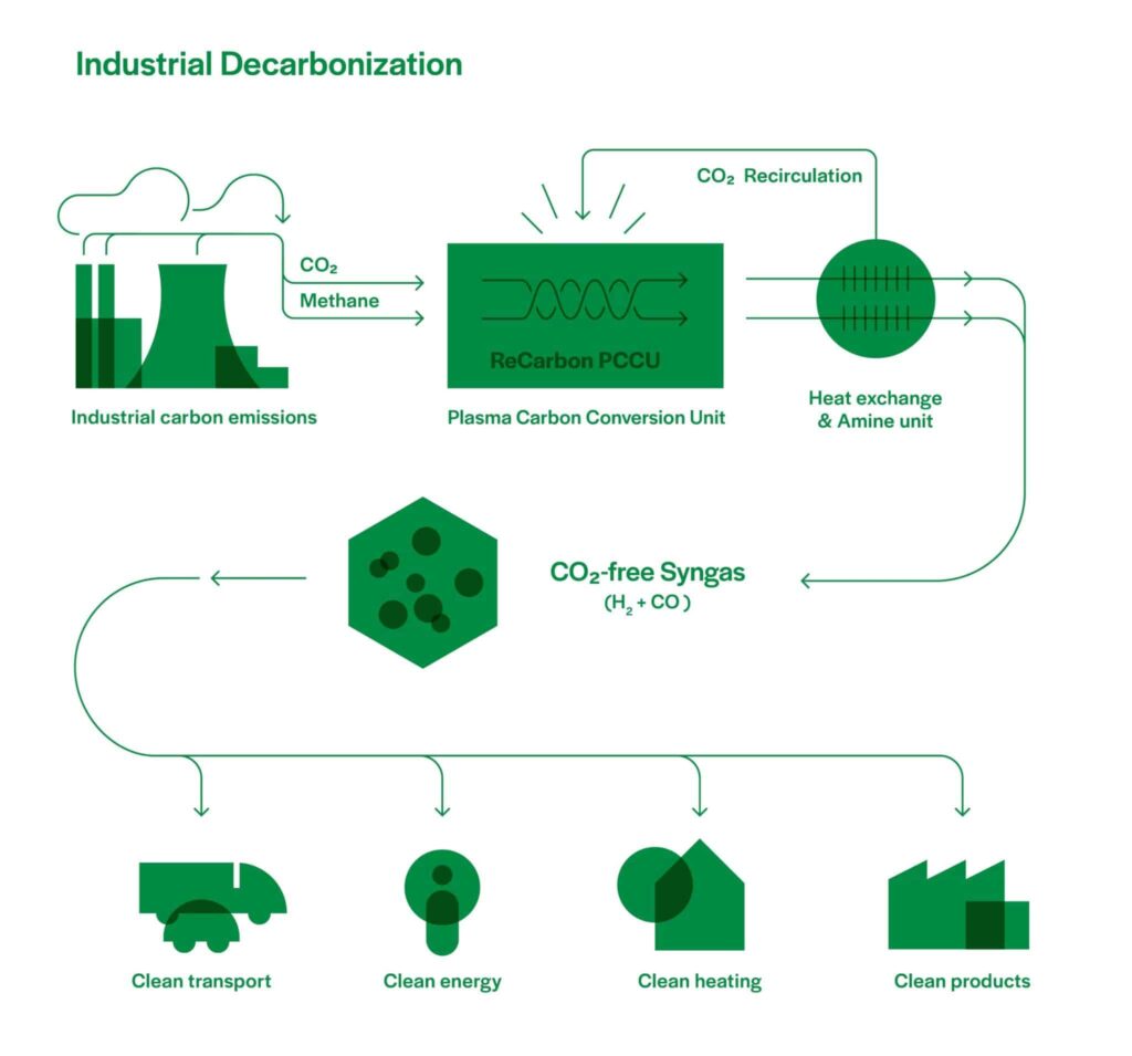 This conversion process is enabled by the company’s Plasma Carbon Conversion Unit (PCCU), a modular and scalable system that can produce up to 900 kg of hydrogen per unit per day. Hichwa elaborates on how ReCarbon’s technology works: “The Plasma Carbon Conversion Unit uses ReCarbon’s proprietary floating microwave plasma technology to break the bonds of greenhouse gases to make clean fuels and products. The plasma transforms carbon dioxide and methane into H2 and CO, known as syngas. This is all done without a catalyst and can be powered by renewable electricity.”
